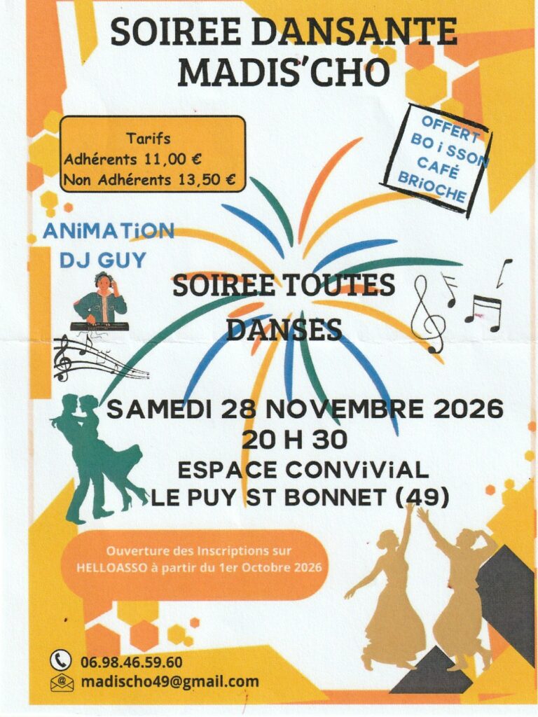 28/11/2026 Soirée dansante avec DJ Guy organisée par Madis’Cho 20/02/2027 Soirée dansante avec DJ Guy et repas fouées, organisée par Danses de salon et danses en ligne macairoises